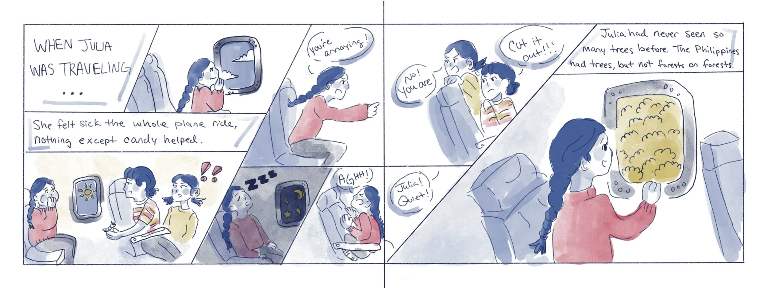 Julia’s Big Adventure is a graphic novel about my friend Julia’s experience moving from the Philippines to the United State, more specifically to Ohio.