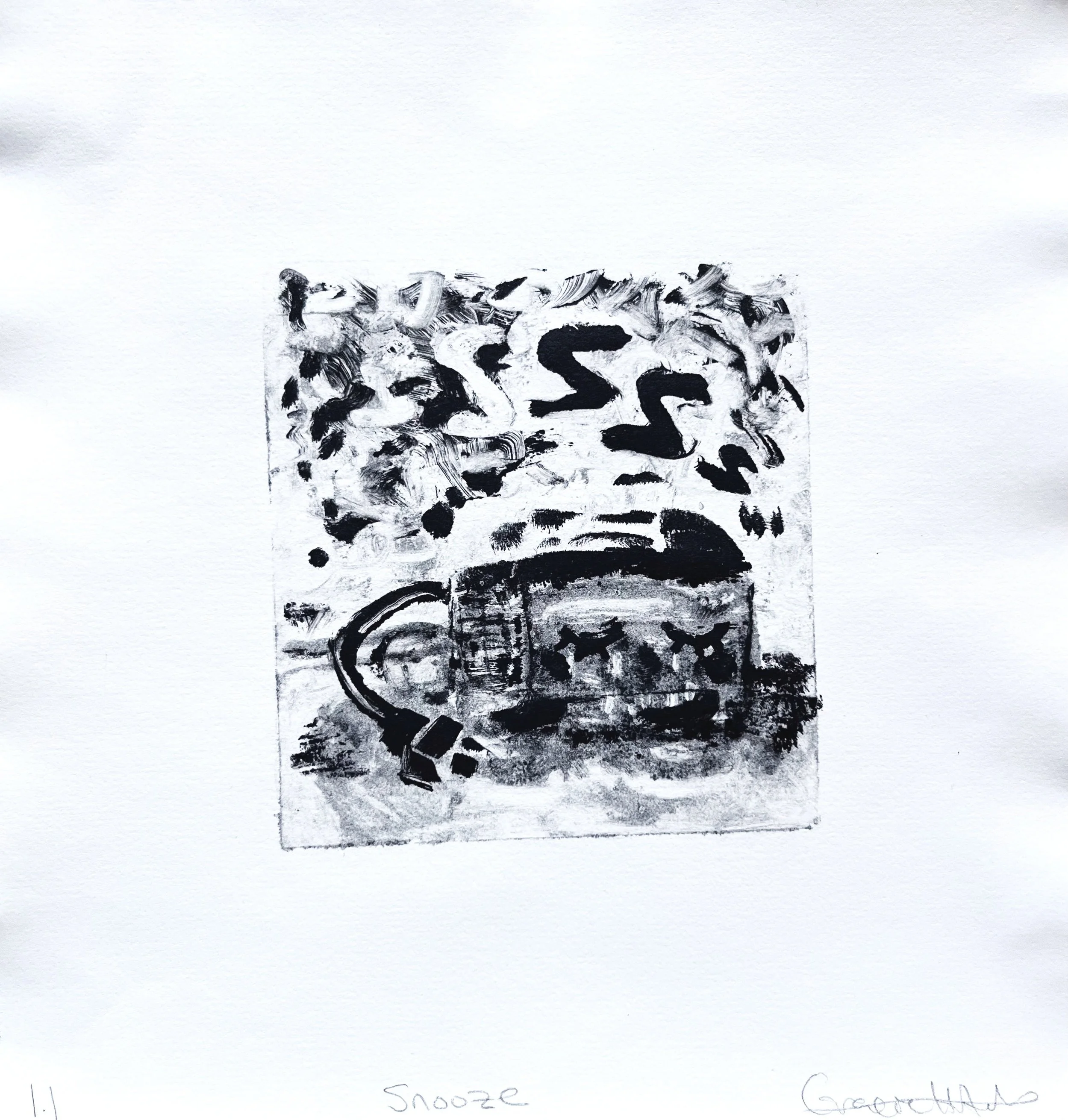 Souvenir was inspired by a painting I was gifted by mom when she traveled to the Bahamas. As time passes, I find new meanings from this monotype. I see commentary on the endangerment and protection of sea turtles in high tourist areas. These beautiful creatures constantly struggle against the development of tourism.