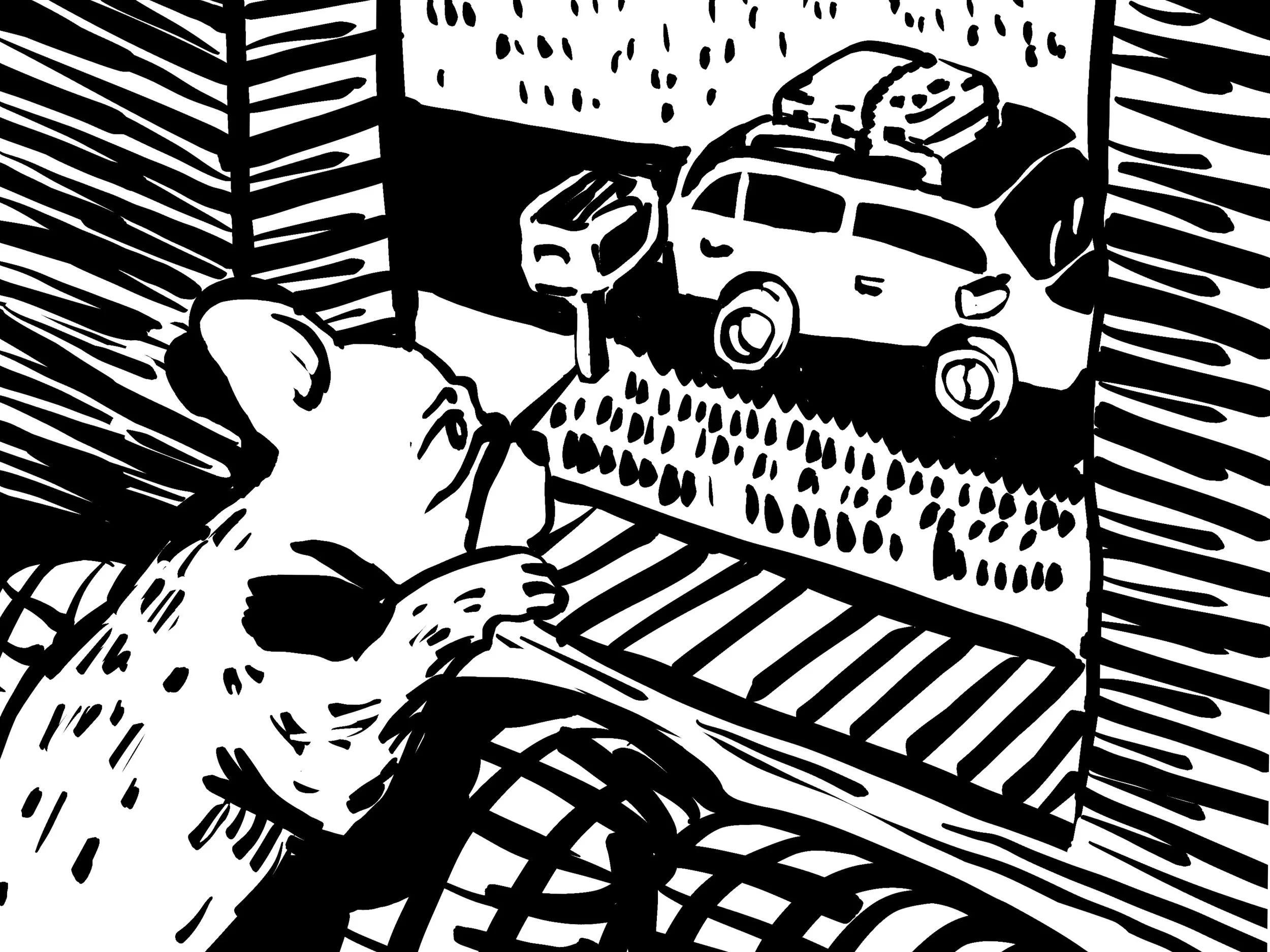 Prompted by the sentence “When I knew it was over”, this woodblock print on rice paper tells the story of a dog sadly watching their favorite person leave for college. The days of playing were gone. I knew it was over when… you left.