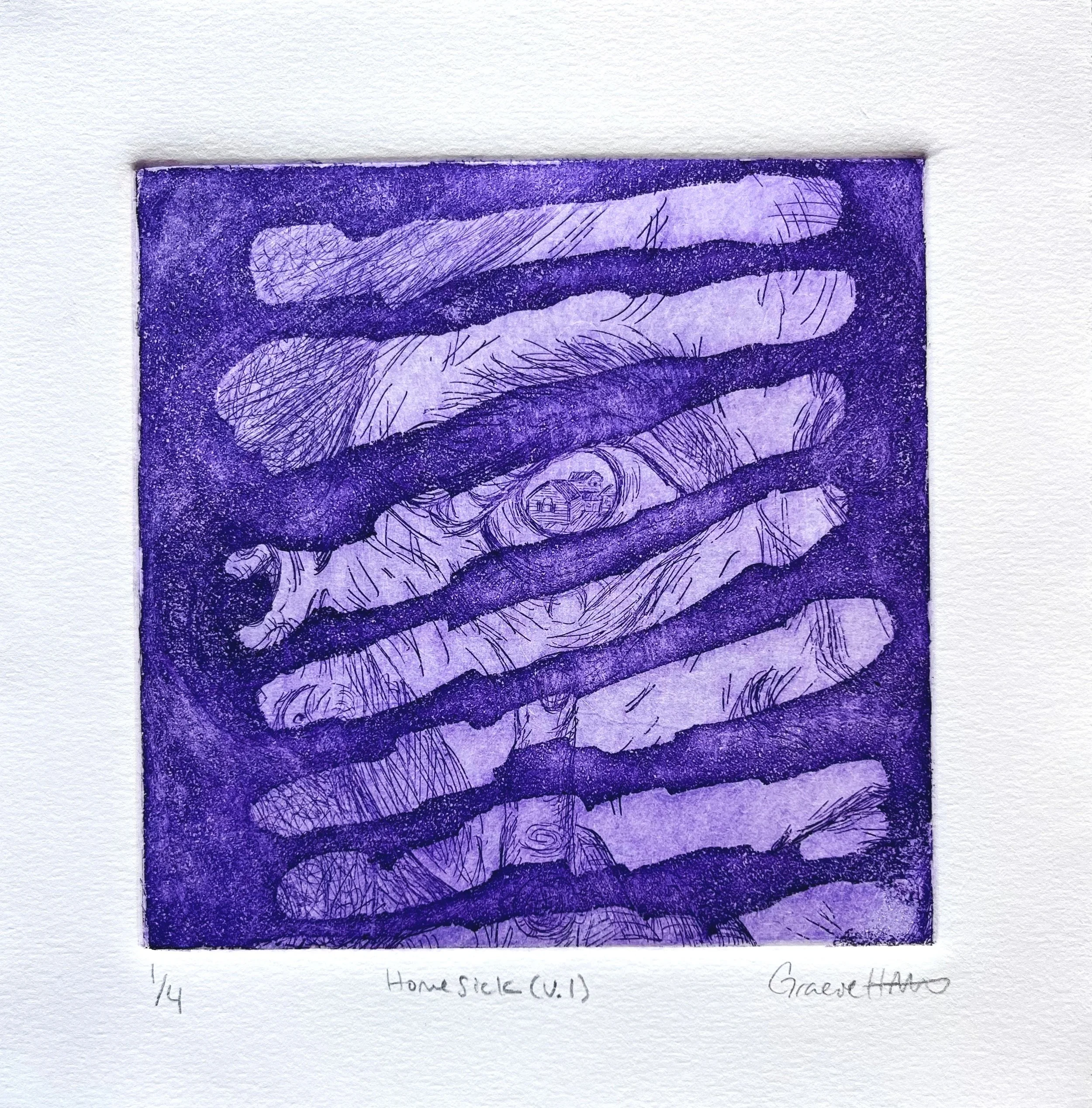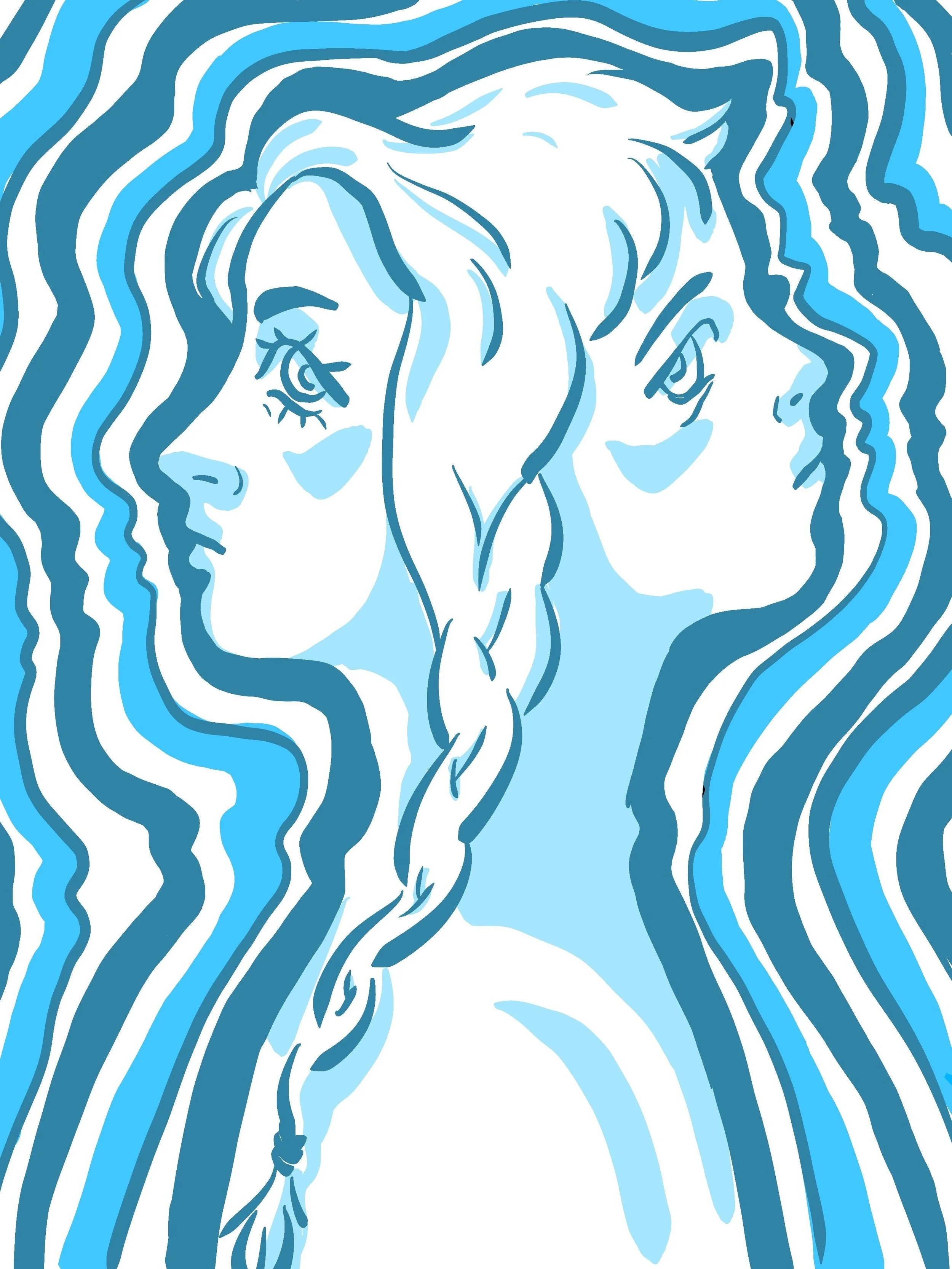 In this woodblock print, I wanted to visually represent my own experiences as a fraternal twin. Conjoined symbolizes twin connection, misconceptions, and individuality.