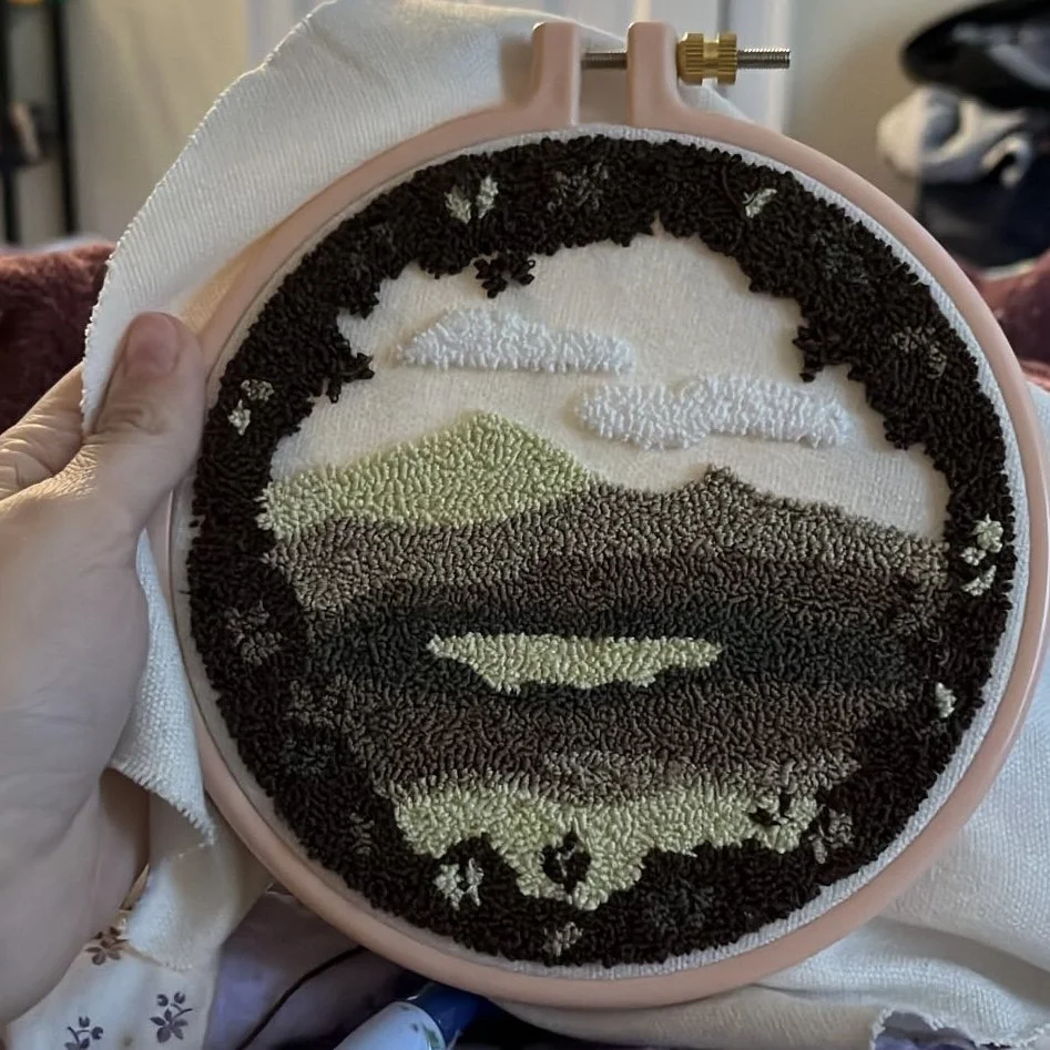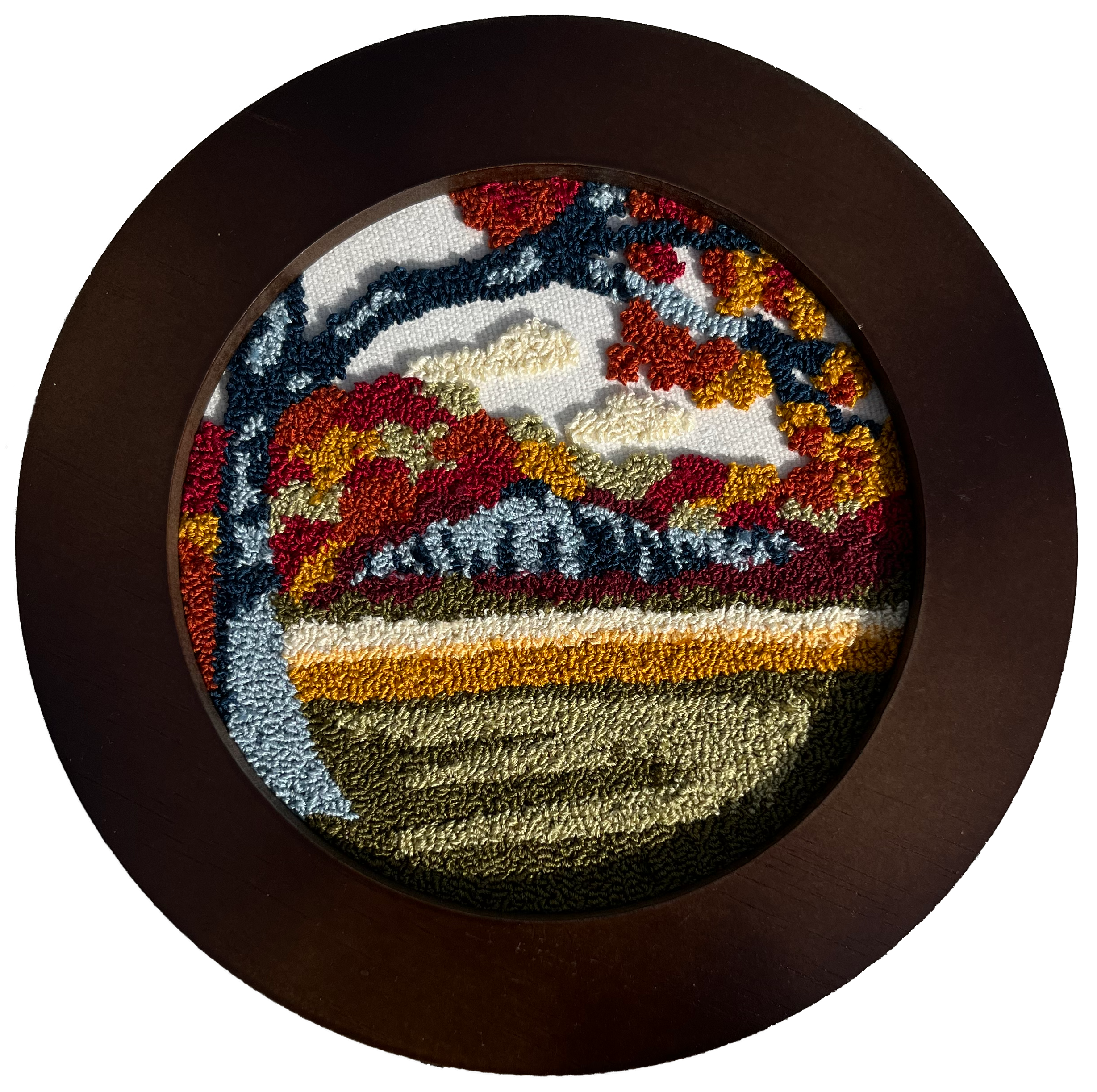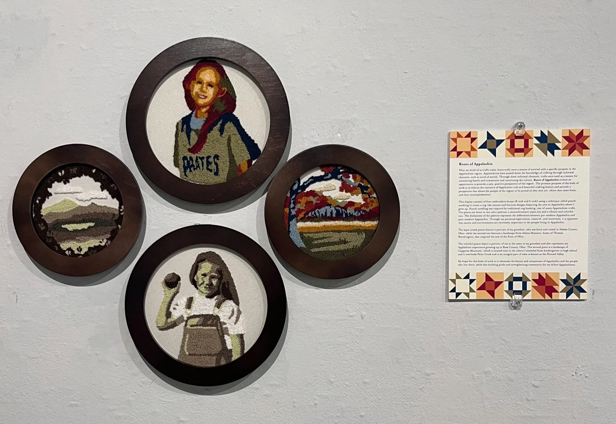 I chose to design and craft four embroidery pieces using a technique called punch needling. The punch needle was invented by Ebenezer Ross in 1886, which was inspired by rug hooking (one of many traditional Appalachian crafts). I wanted my designs to depict the area in Appalachia where I grew up and my family. The pieces are done in two color palettes: monochromatic sepia and colors specific to Appalachia. The dichotomy of the palettes represent pre-modern Appalachia and post-modern Appalachia. Throughout this process, I had to learn how to do punch needle embroidery and problem solve through my design and materials.