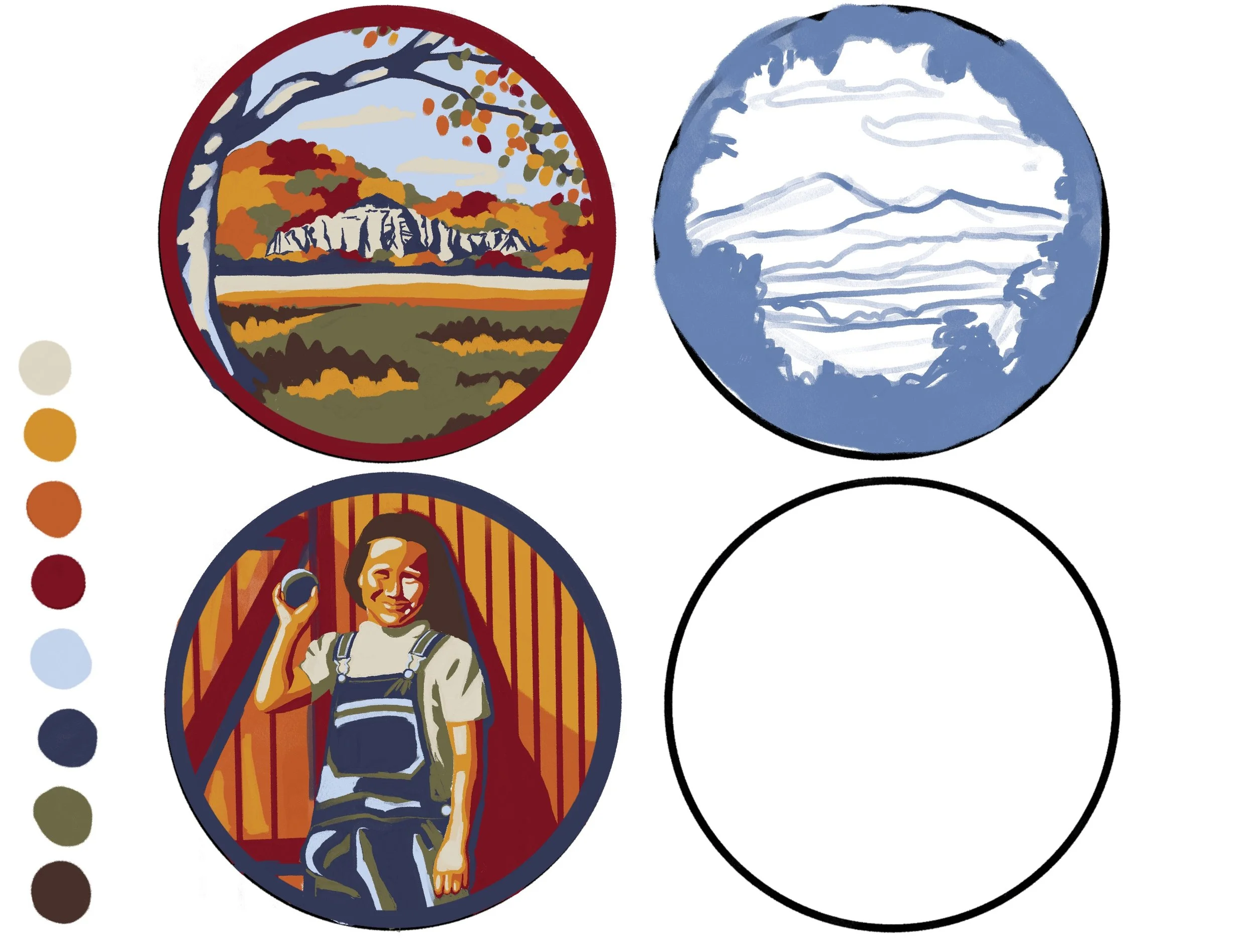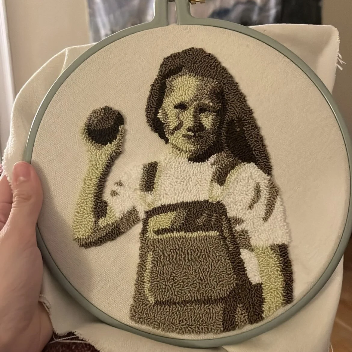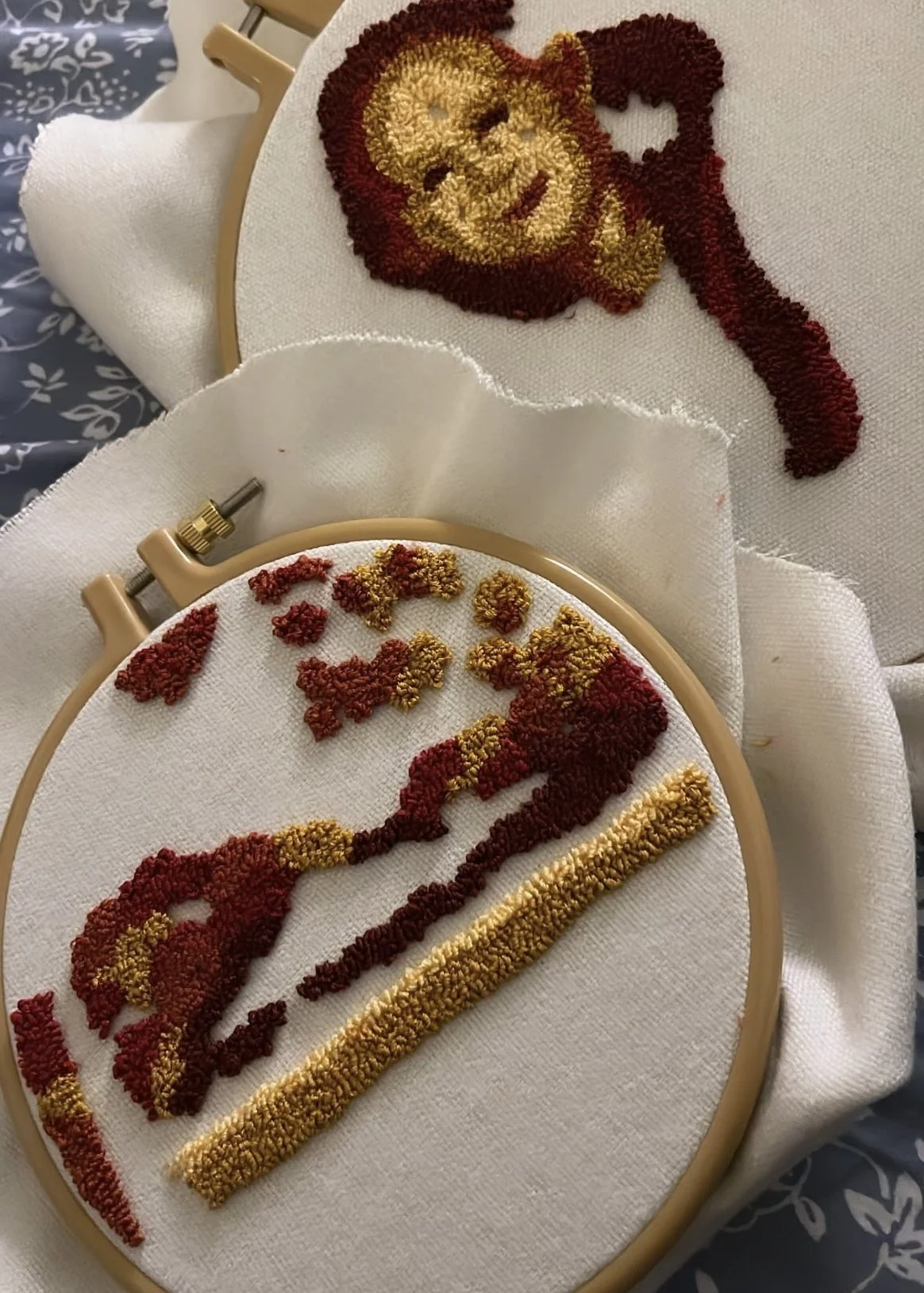 I chose to design and craft four embroidery pieces using a technique called punch needling. The punch needle was invented by Ebenezer Ross in 1886, which was inspired by rug hooking (one of many traditional Appalachian crafts). I wanted my designs to depict the area in Appalachia where I grew up and my family. The pieces are done in two color palettes: monochromatic sepia and colors specific to Appalachia. The dichotomy of the palettes represent pre-modern Appalachia and post-modern Appalachia. Throughout this process, I had to learn how to do punch needle embroidery and problem solve through my design and materials.