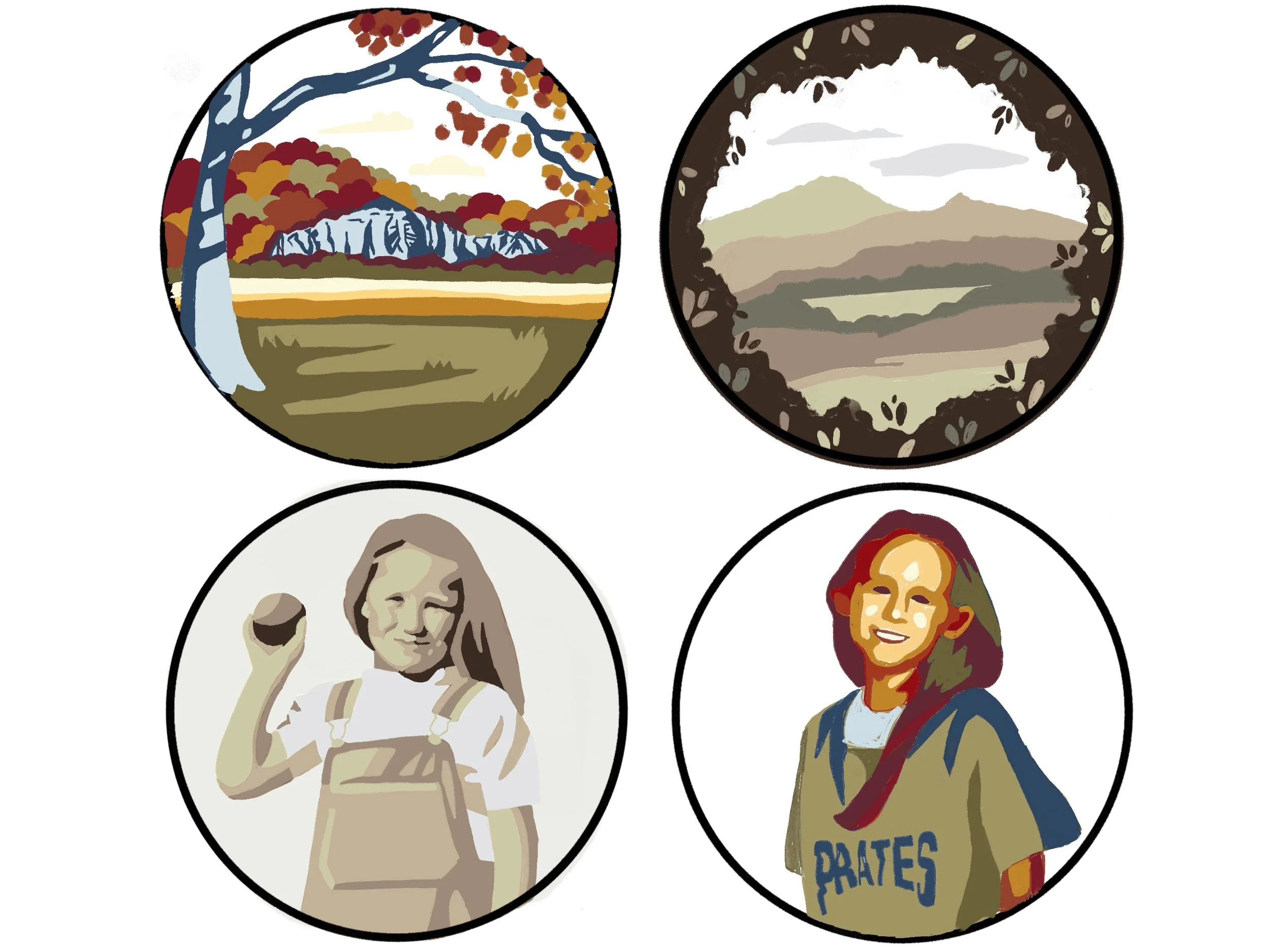 The colorful pieces depict a portrait of me at the same age as my grandma and also represents my Applachian experience growing up in Ross County, Ohio. The second piece is a landscape of Copperas Mountain, which is located next to the school I attended from kindergarten to high school and it overlooks Paint Creek and is an integral part of what is known as the Painted Valley.